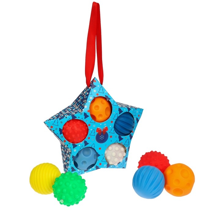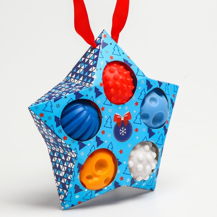 Подарочный набор развивающих, тактильных мячиков Крошка Я «Волшебная звезда» 5 шт., цвет синий