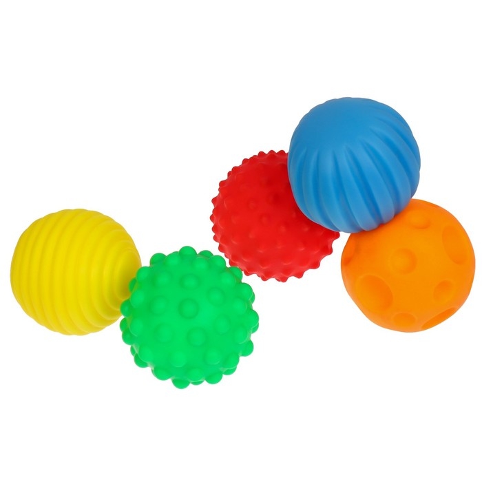 Мячики с рельефной массажной поверхностью способствуют развитию мелкой моторики и тактильных ощущений. Давление на фактурную поверхность мячиков стимулирует и благоприятно воздействует на нервные окончания, ответственные за большинство процессов в организме. Шарики имеют яркие цвета, которые способствуют развитию зрения, а пищалка внутри развивает слуховое восприятие.