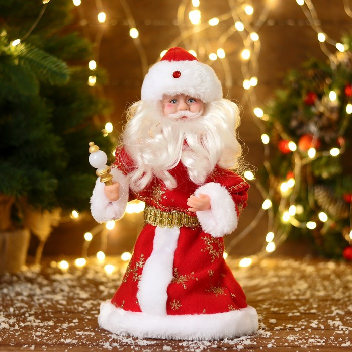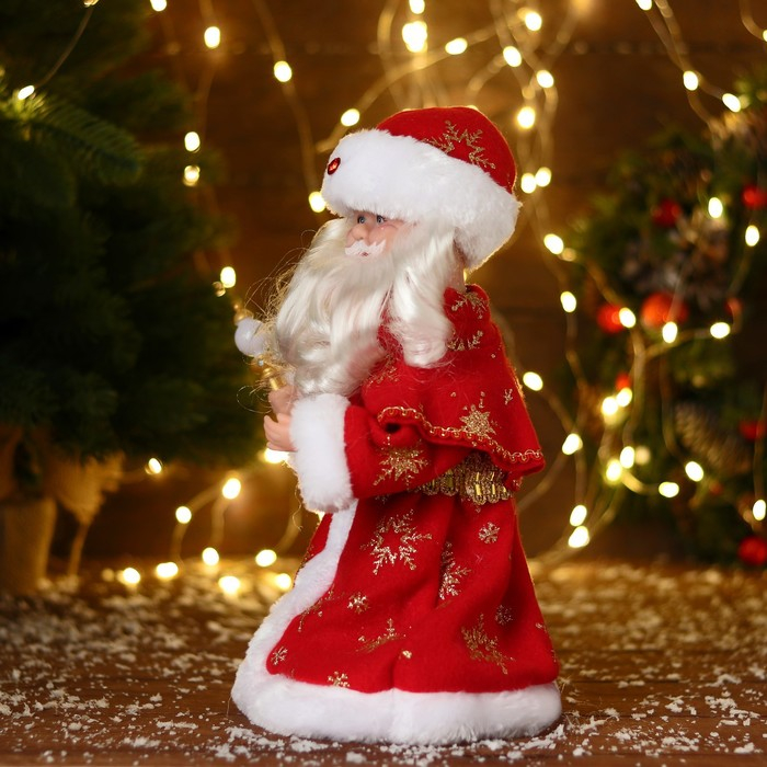 Дед Мороз "В красной шубе и шапке с жемчужинкой" 29 см, двигается