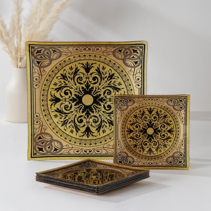 Набор столовый «Арабеска», 7 предметов: 30×30 см - 1 шт, 18×18 см - 6 шт, цвет жёлтый