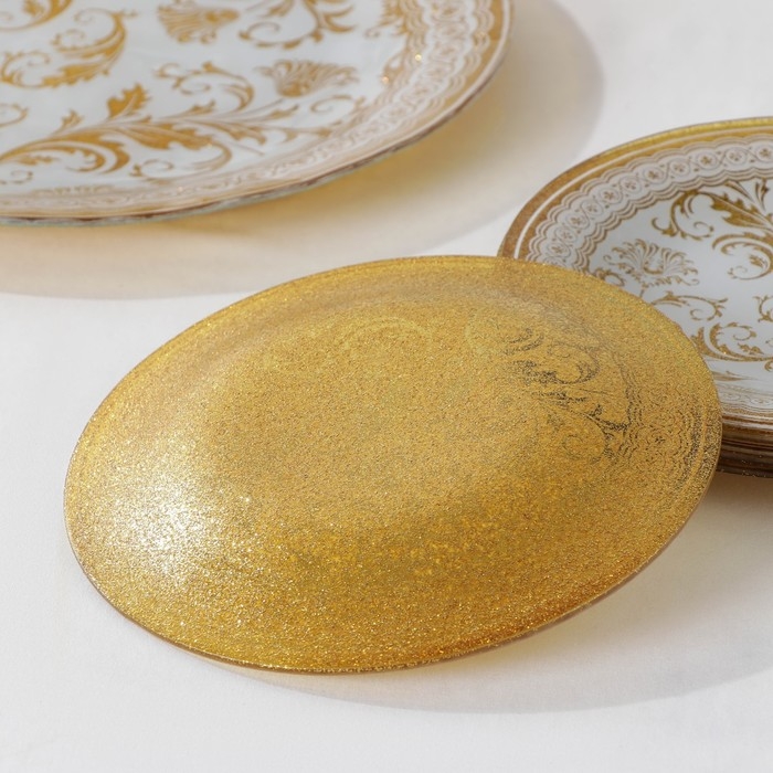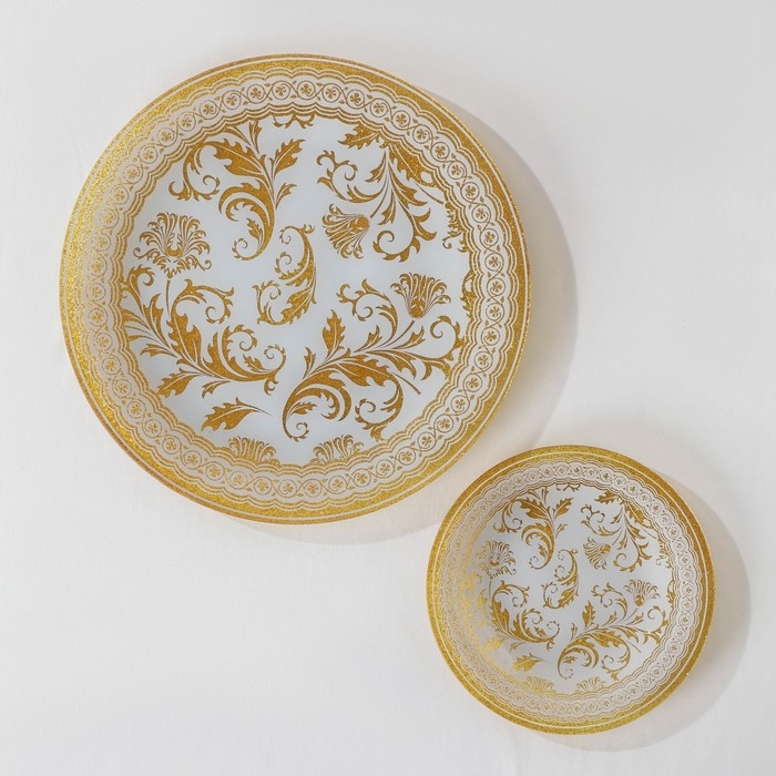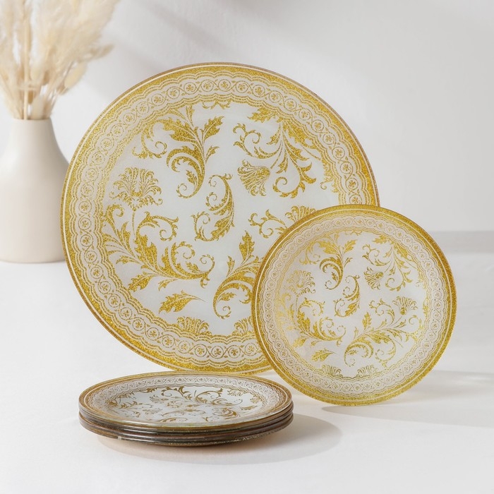 Набор столовый «Растительный узор», 7 предметов: d=30 см - 1 шт, d=18 см - 6 шт, цвет белый с золотым