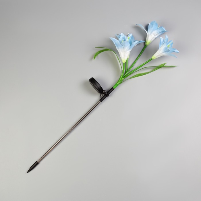 Садовый светильник на солнечной батарее «Лилия синяя», 80 см,4 LED, свечение мульти (RGB)
