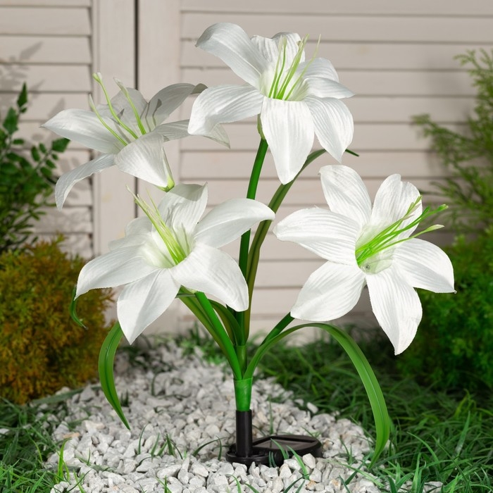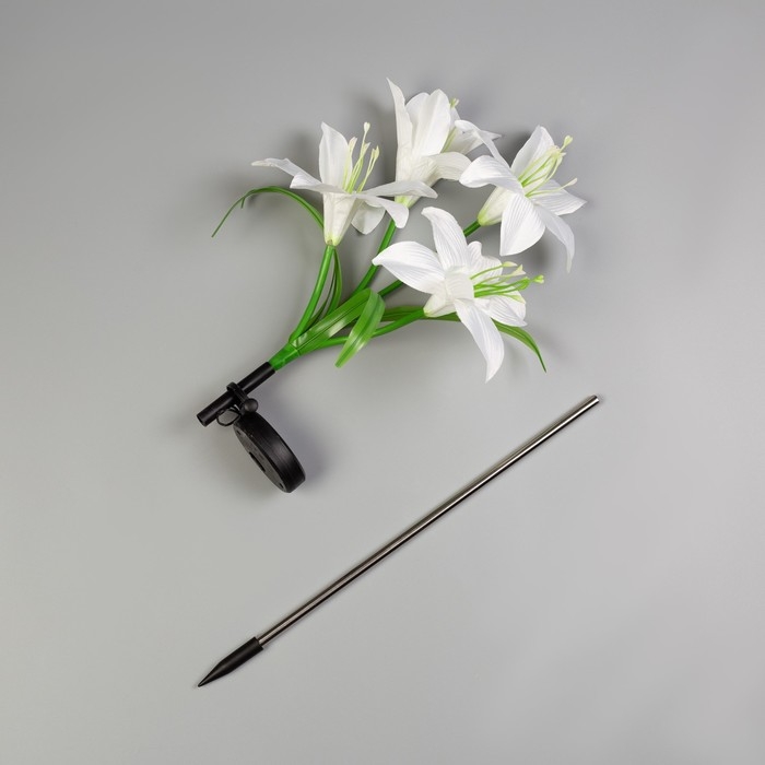 Садовый светильник на солнечной батарее «Лилия белая», 80 см, 4 LED, свечение мульти (RGB)