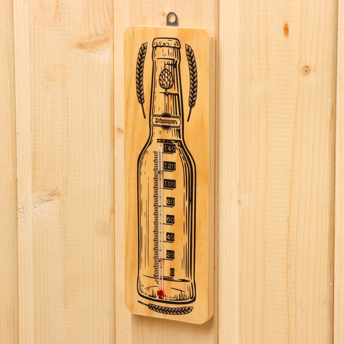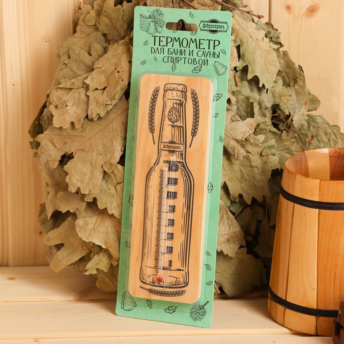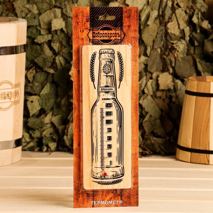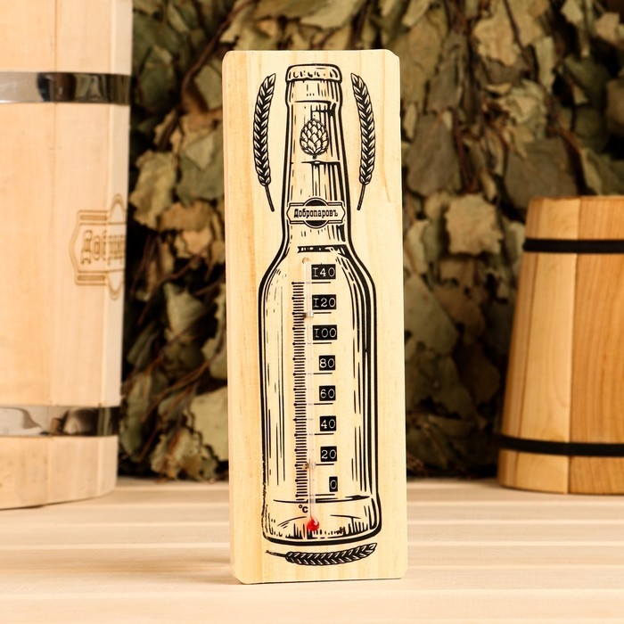 Термометр спиртовой "Бутылка", деревянный 140 С
