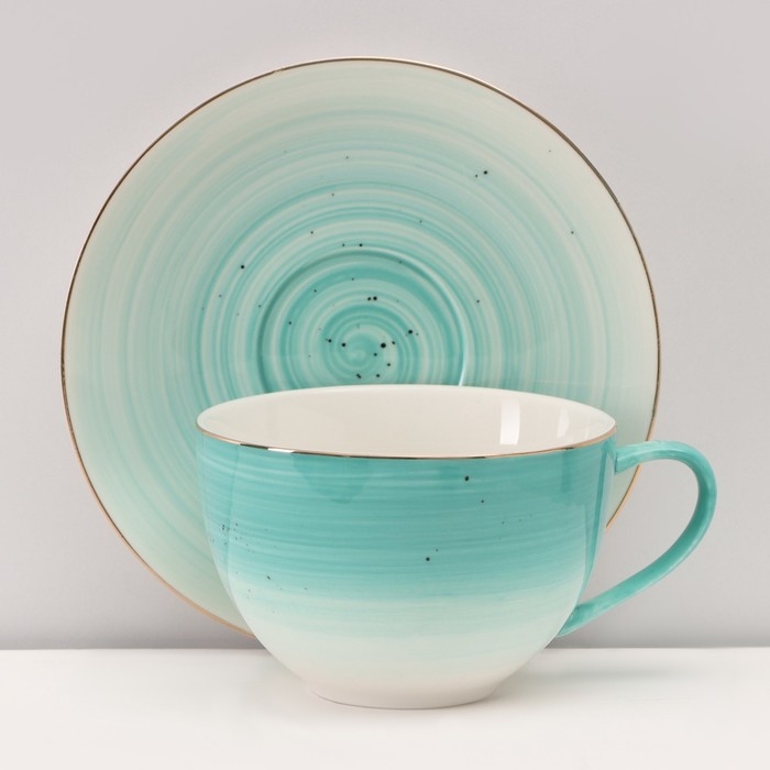 Сервиз фарфоровый чайный Доляна «Млечный путь», 15 предметов: 6 чашек 220 мл, 6 блюдец d=13,5 см, молочник 300 мл, сахарница 350 мл, чайник 1000 мл, цвет бирюзовый
