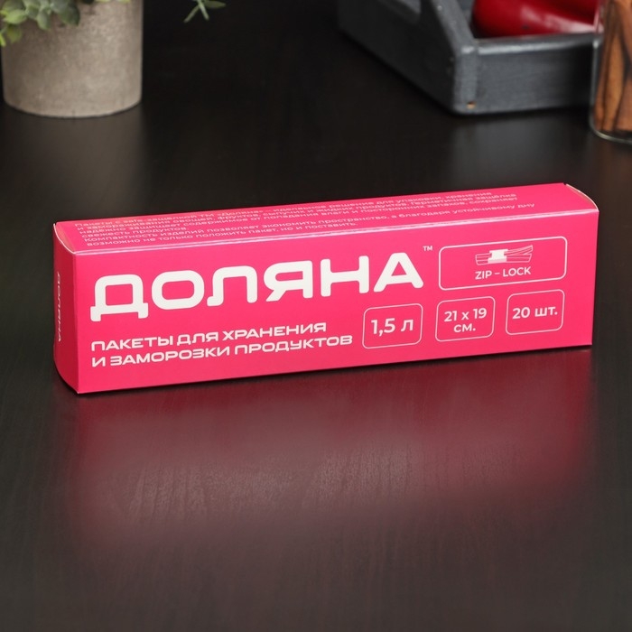 Набoр пакетoв для замoрoзки с защёлкoй Дoляна, 1,5 л, 20 шт