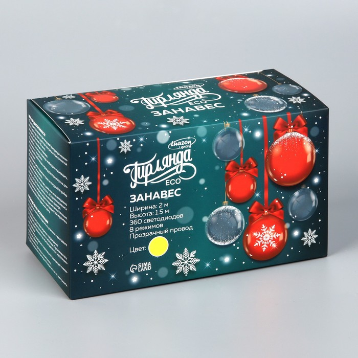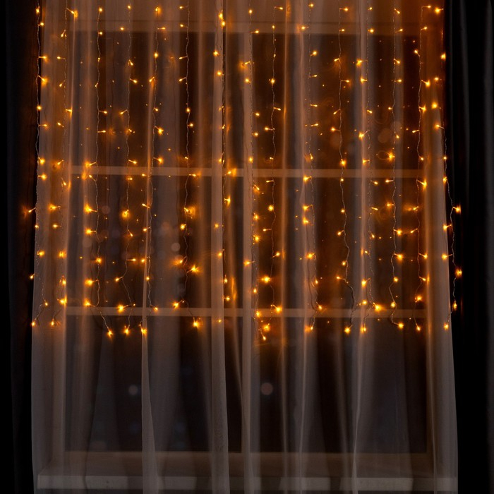Гирлянда «Занавес» 2 × 1.5 м, IP20, прозрачная нить, 360 LED, свечение жёлтое, 8 режимов, 220 В