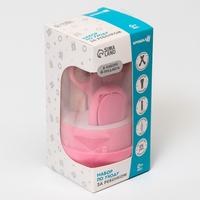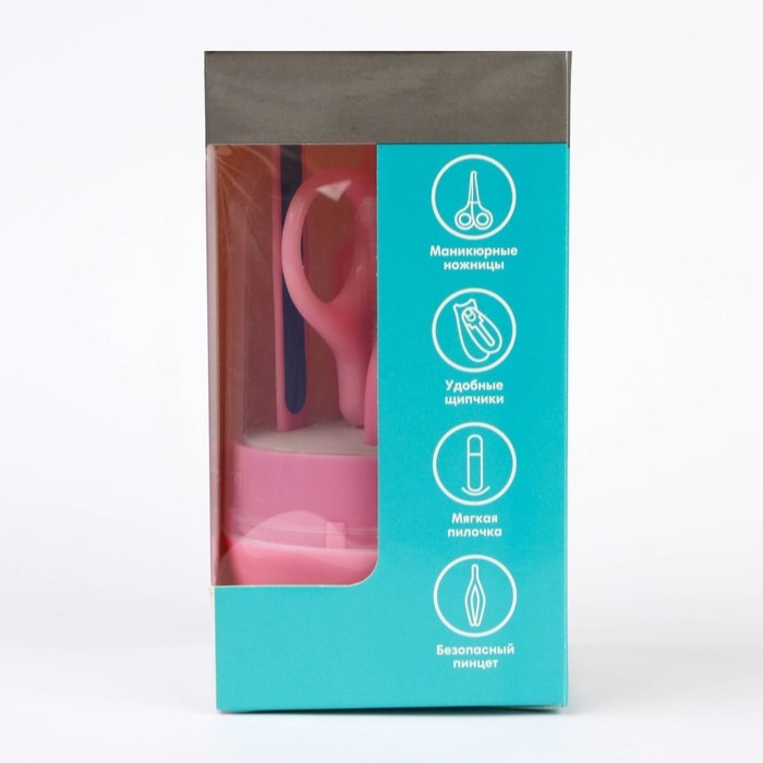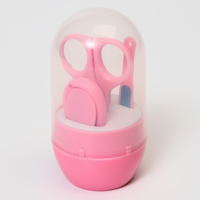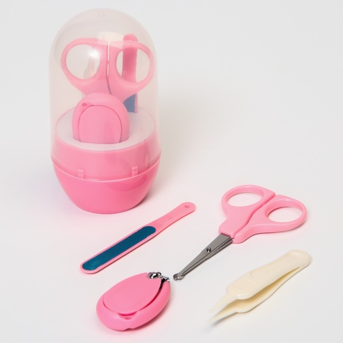 Набор маникюрный детский: ножницы, щипчики, пилочка, пинцет, цвет розовый