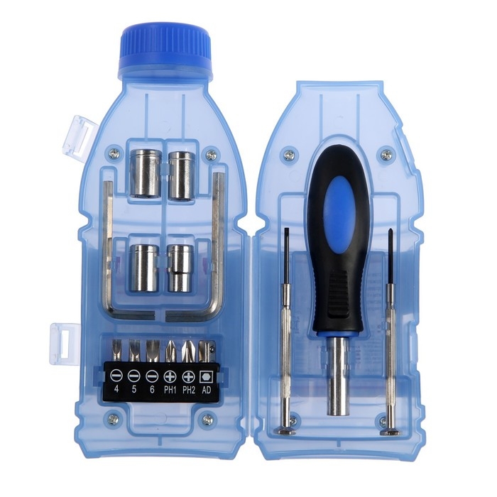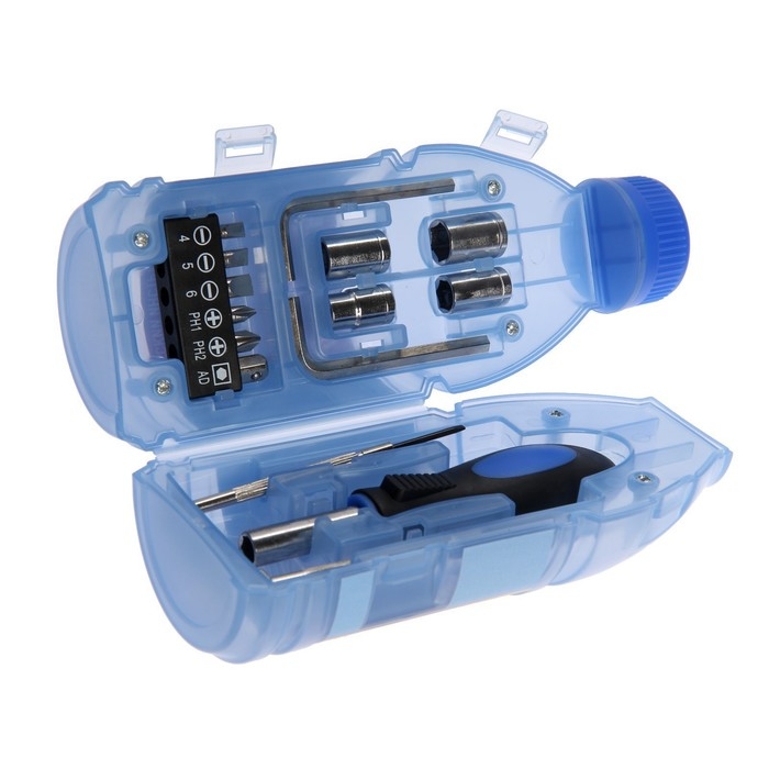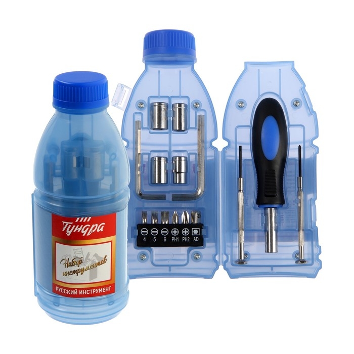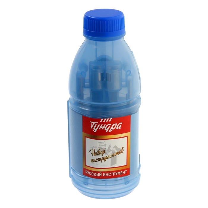 Набор инструментов ТУНДРА, подарочный пластиковый кейс "Бутылка", 15 предметов