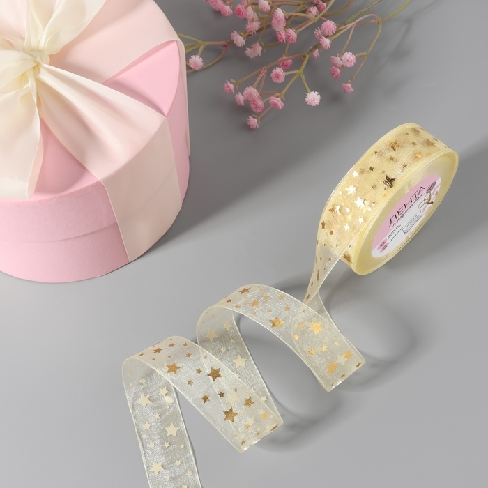 Лента капроновая с тиснением «Звёзды», 25 мм, 23 ± 1 м, цвет бежевый