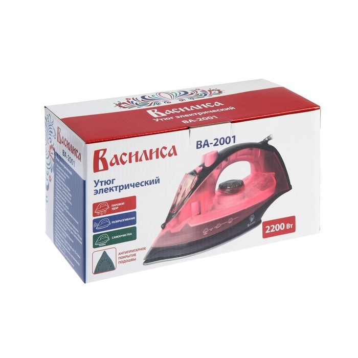 Утюг "ВАСИЛИСА" ВА-2001, 2200 Вт, антипригарная подошва, 120 г/мин, 160 мл, розовый