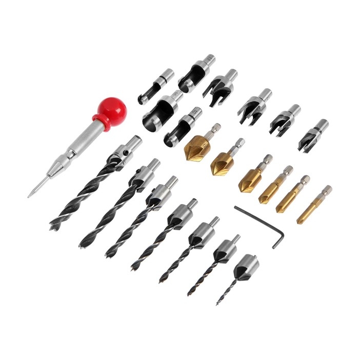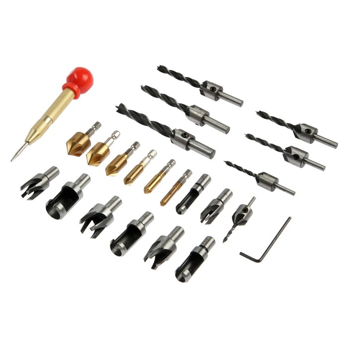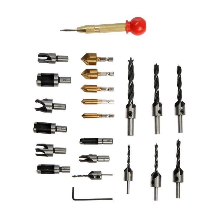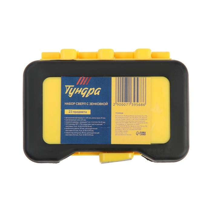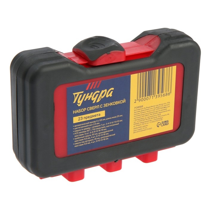 Набор сверл с зенковкой ТУНДРА, шестигранные и круглые хвостовики, 23 шт.