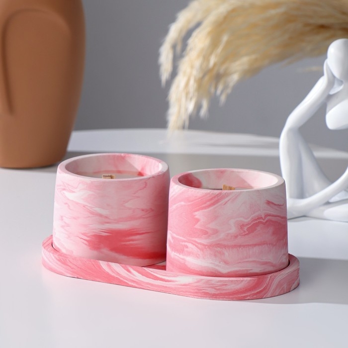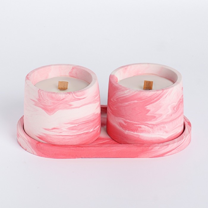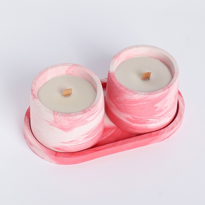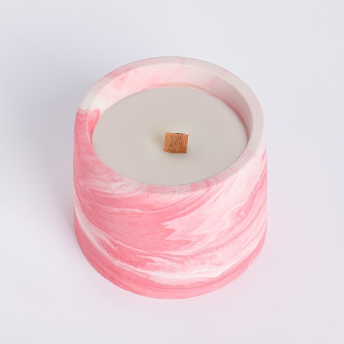 Свечи в бетоне на подставке "Лофт", соевый воск, деревянный фитиль, бело-розовая