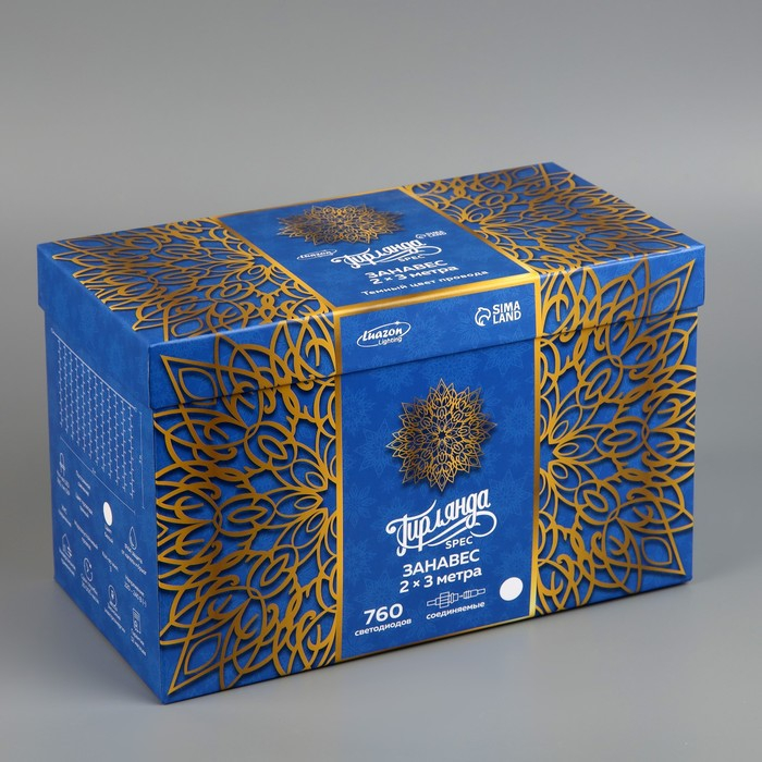 Гирлянда «Занавес» 2 × 3 м, IP44, УМС, тёмная нить, 760 LED, свечение белое, 220 В