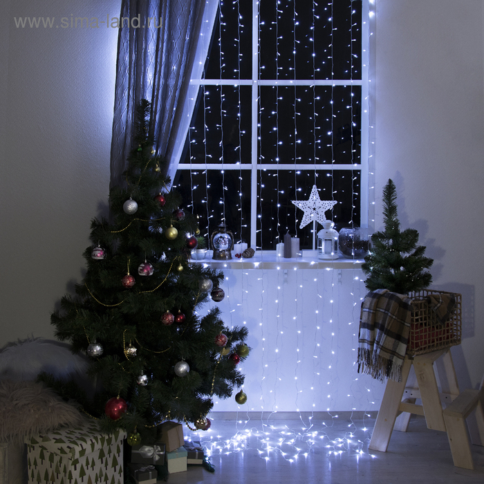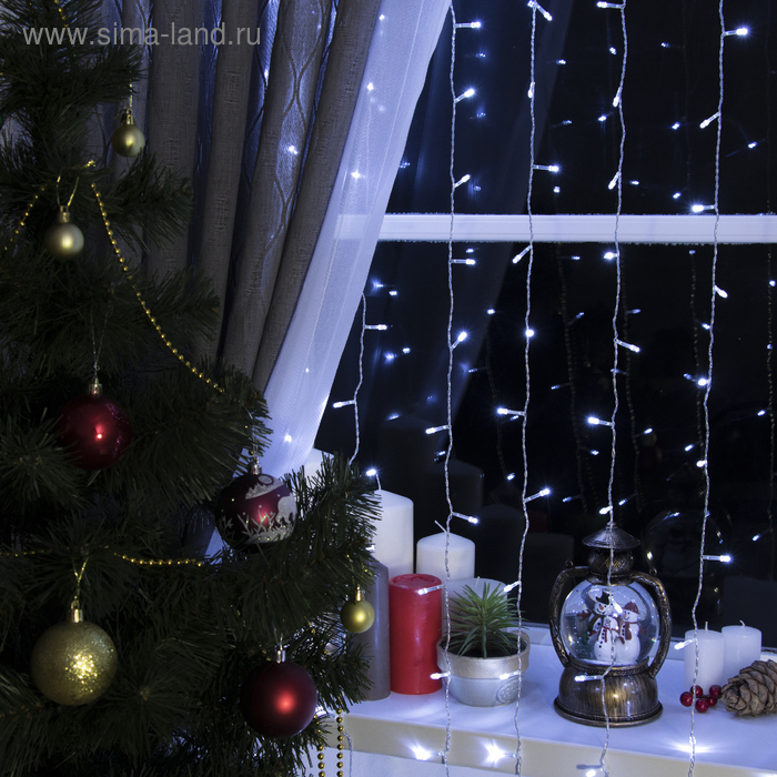 Гирлянда «Занавес» 2 х 3 м, IP20, прозрачная нить, 720 LED, свечение белое, 8 режимов, 220 В