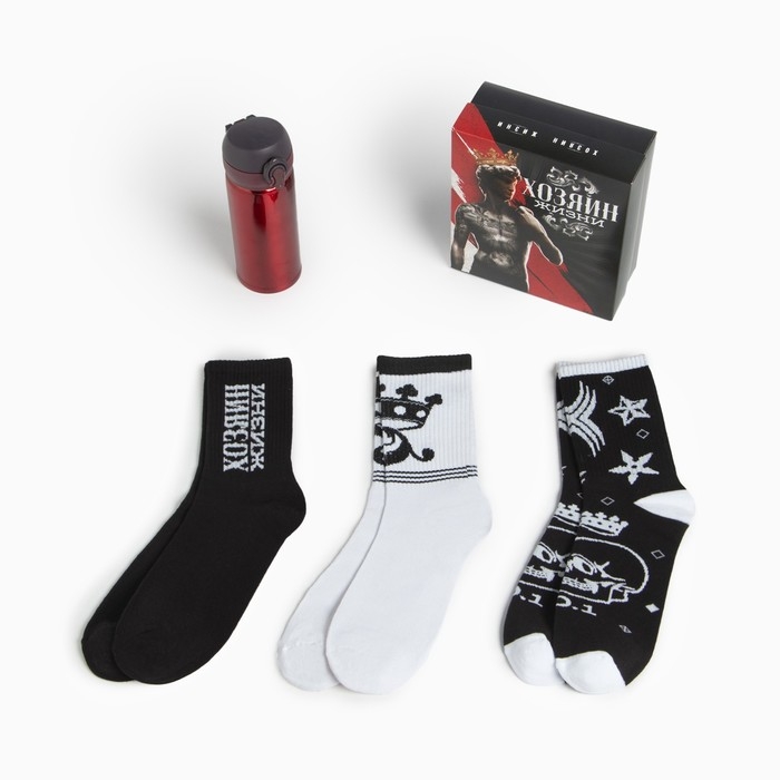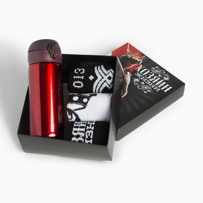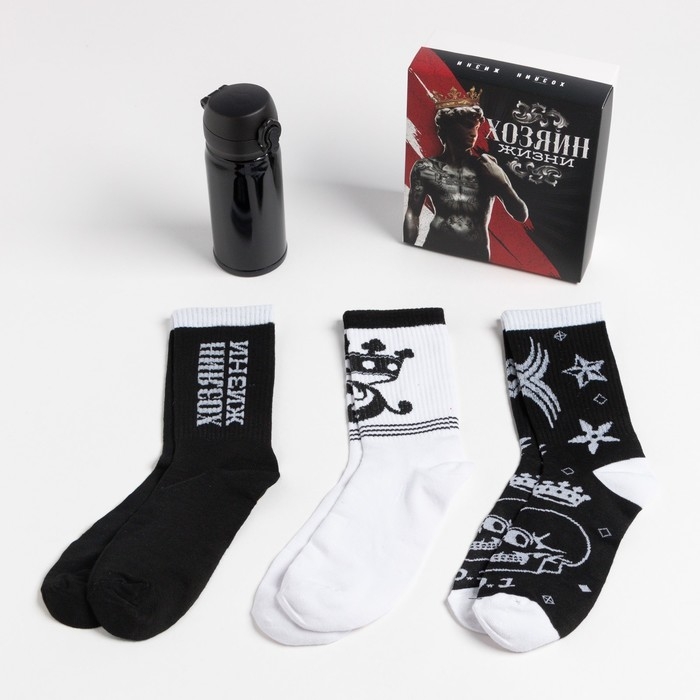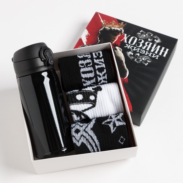 Подарочный набор термос и носки 3 пары KAFTAN "Хозяин жизни", р. 41-44 (27-29 см)