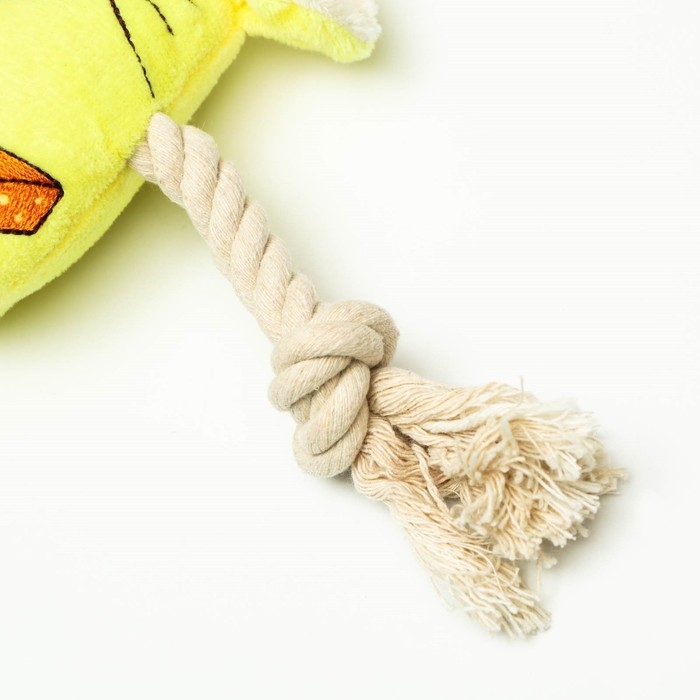 Игрушка мягкая для собак "Веселая мышка" с канатом и пищалкой, 20 х 13 см, жёлтая