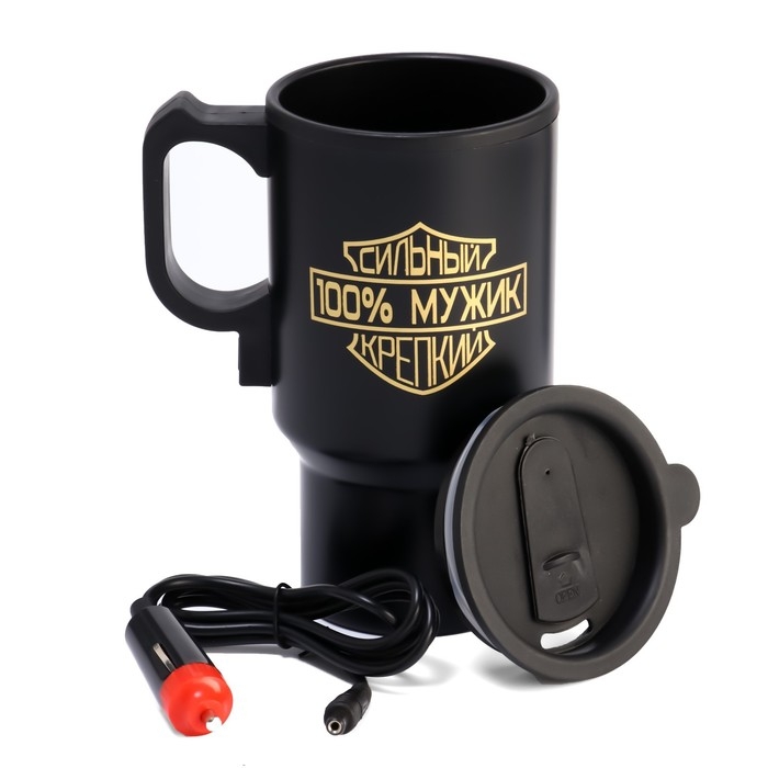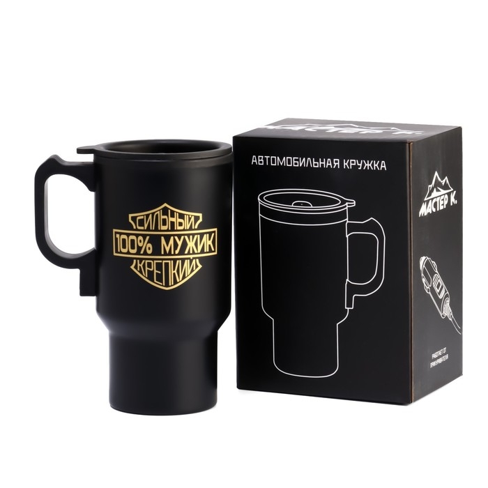 Термокружка, 450 мл, Автомобильная "100 % мужик", сохраняет тепло 4 ч, 12 х 17 см