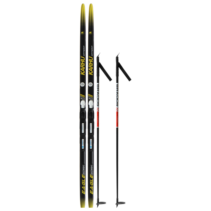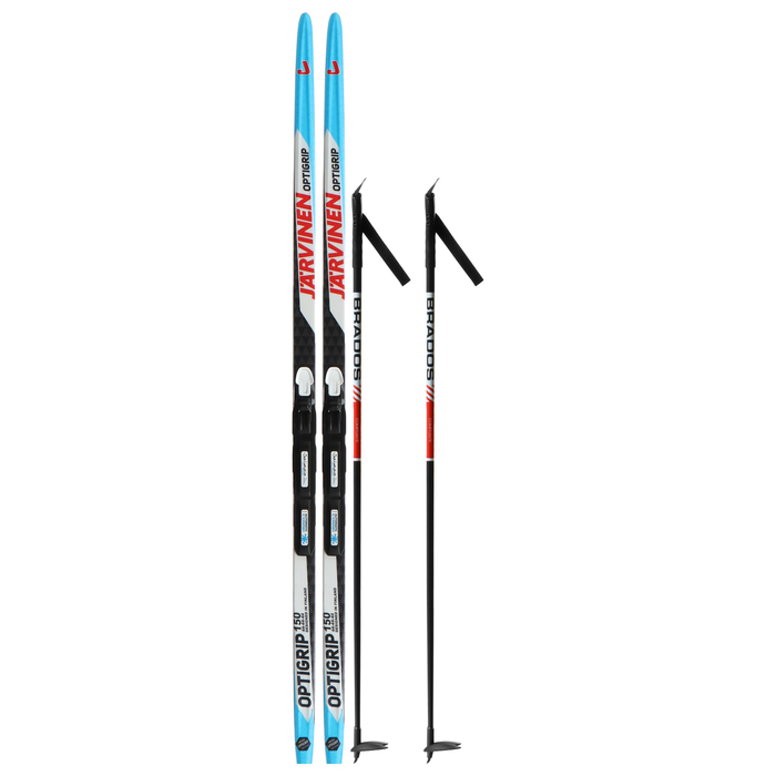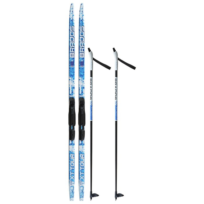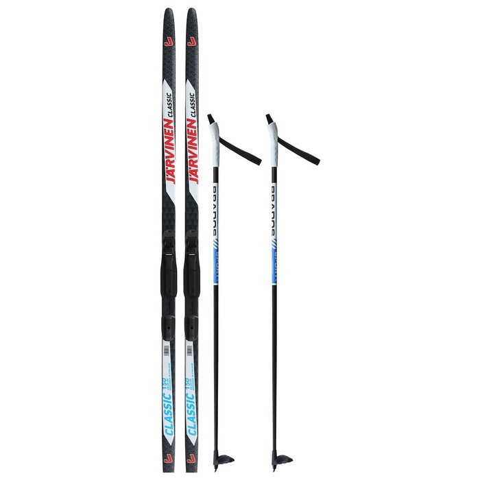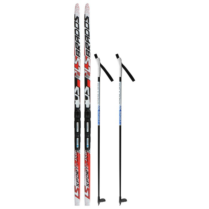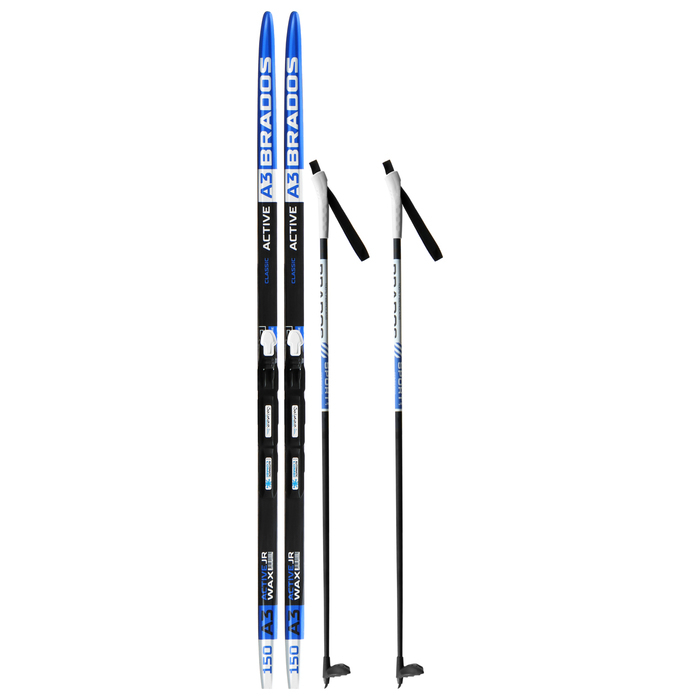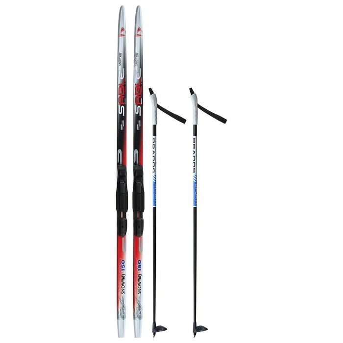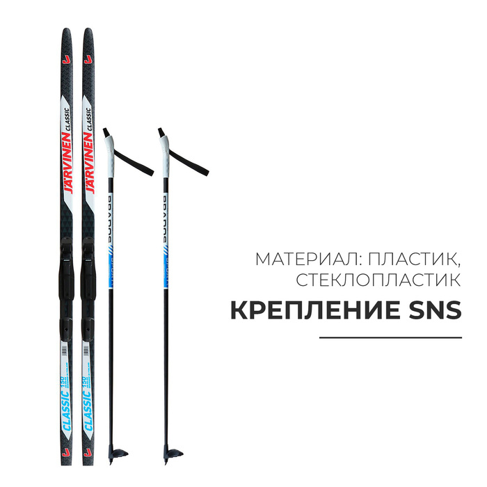 Комплект лыжный: пластиковые лыжи 150 см без насечек, стеклопластиковые палки 110 см, крепления SNS, цвета МИКС