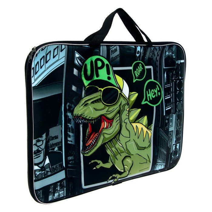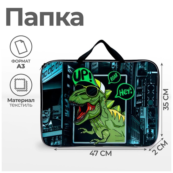 Папка для чертежей и рисунков А3, 470 х 350 х 20 мм, с ручками, текстильная, Calligrata "Динозавр"