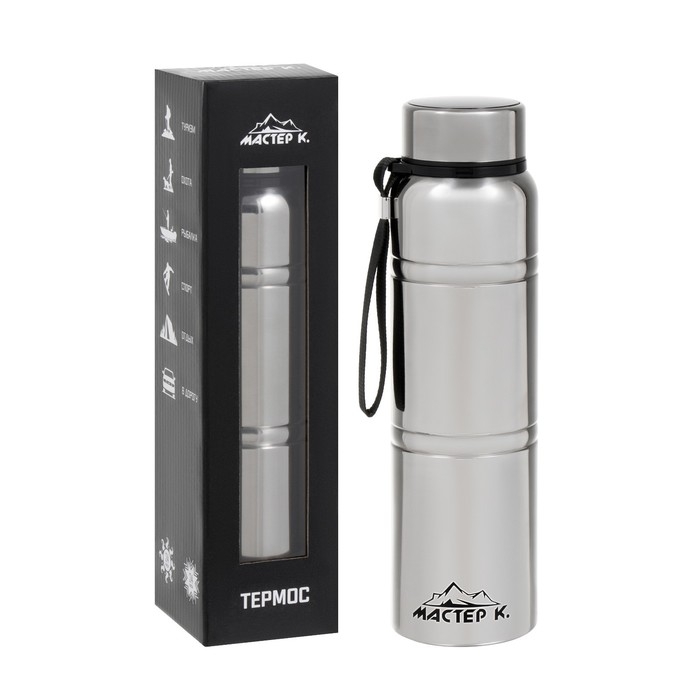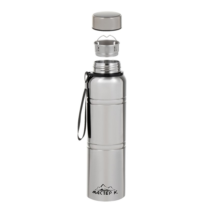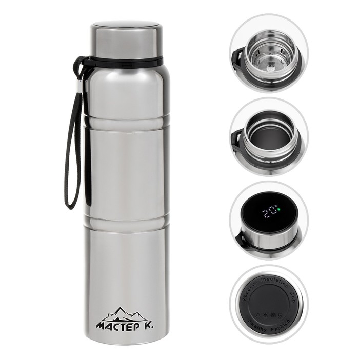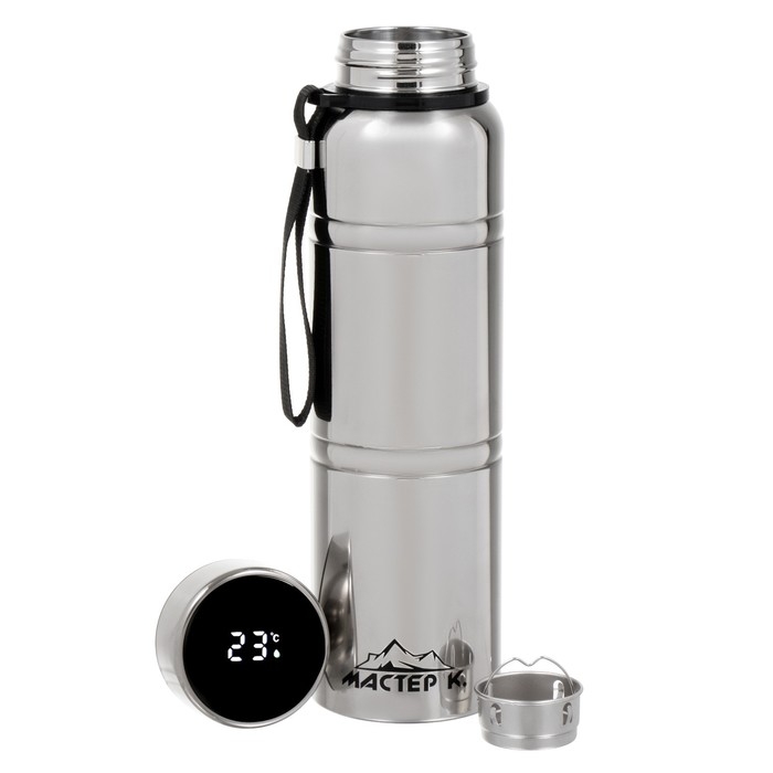 Термос, 1 л, Warm, сохраняет тепло 24 ч, с ситечком, с датчиком температуры, хром