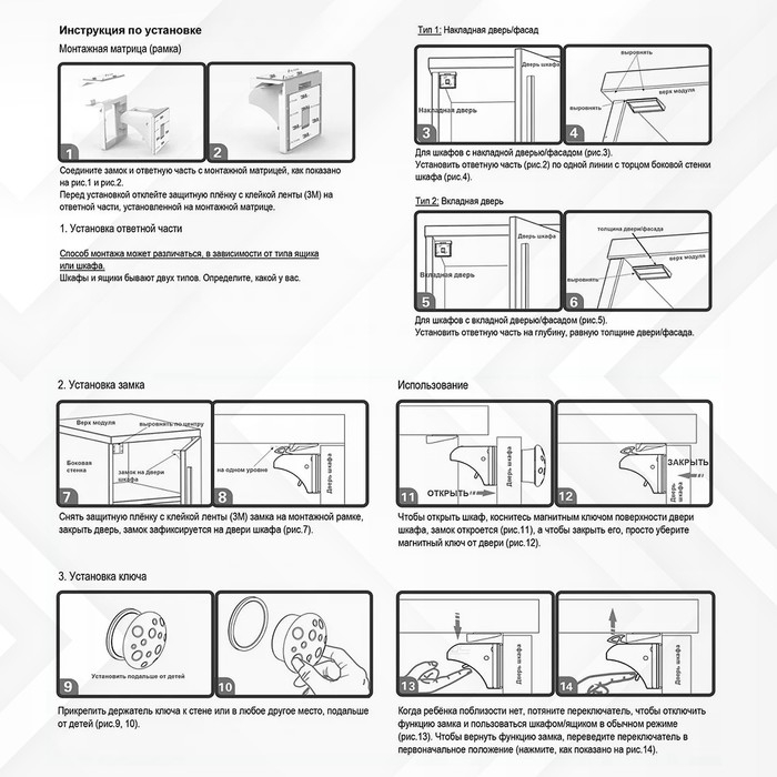 Замки изготовлены из высококачественного безопасного пластика. Изделие не портит внешний вид мебели и не влияет на интерьер.