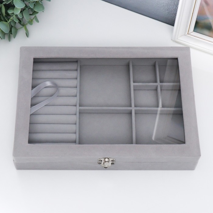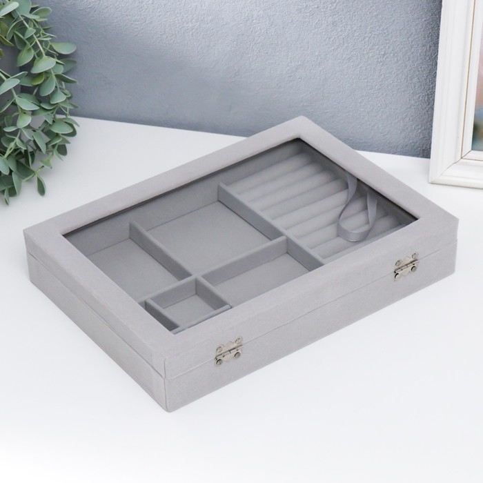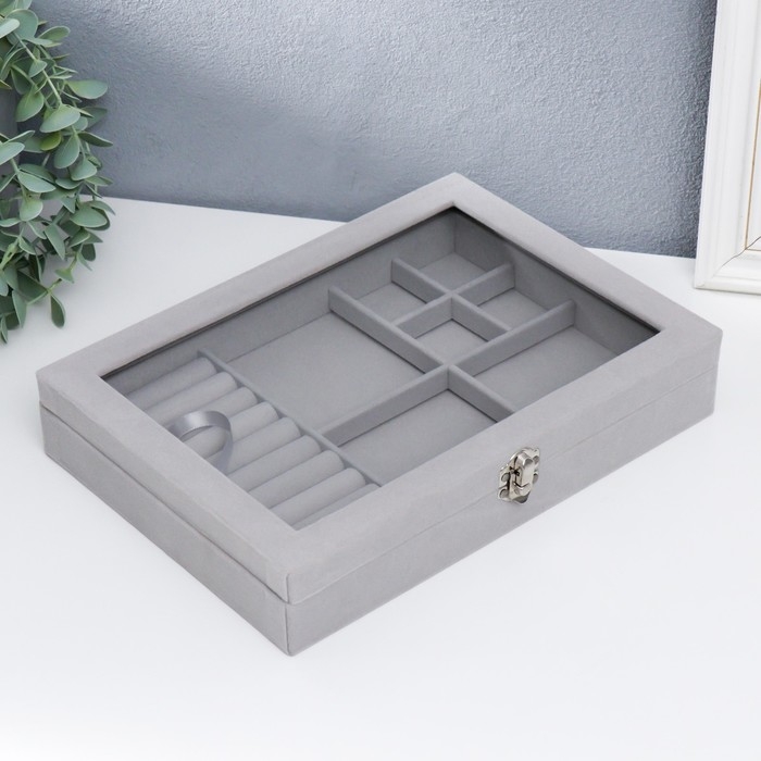 Шкатулка бархат для украшений (колец, браслетов и серёг) "Серый туман" 5х20х28 см