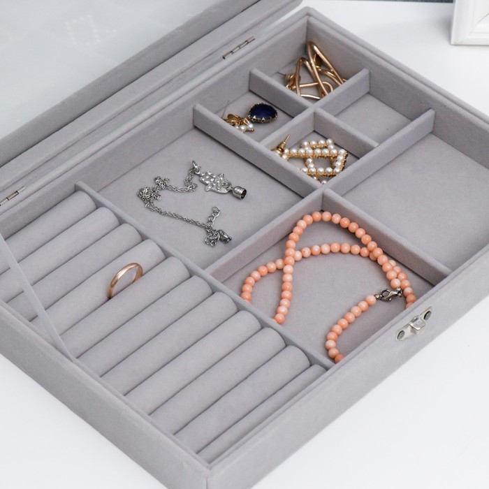 Для украшений, Под сережки, С внутренней обивкой, С делениями, С замочком