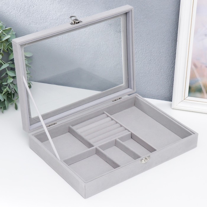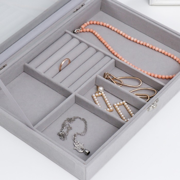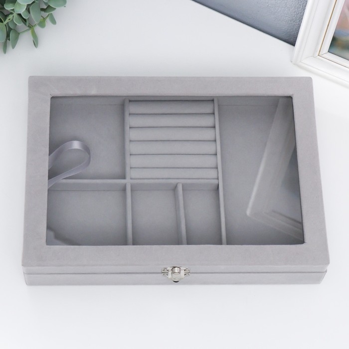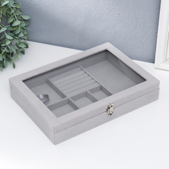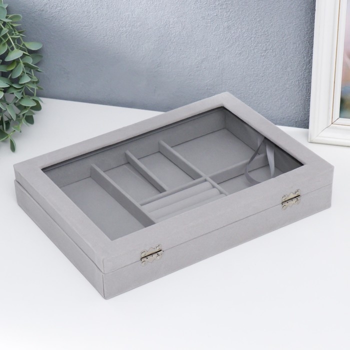 Шкатулка бархат для украшений многофункциональная "Серый туман" 5х20х28 см