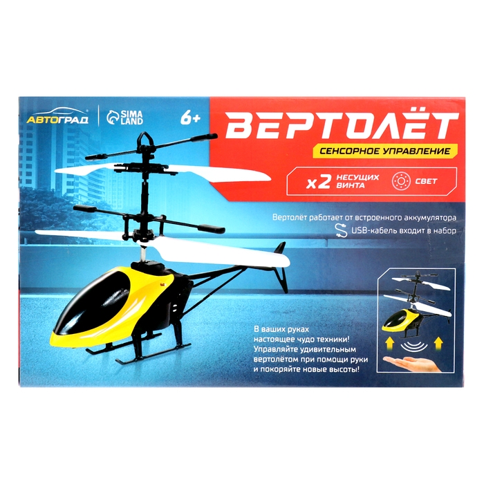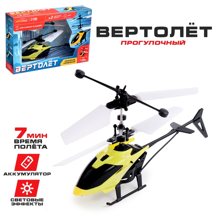 С вертолётом «Прогулочный» ребёнок станет профессионалом пилотажа. Для управления этой авиамоделью не нужен пульт! Встроенный сенсорный датчик позволяет управлять вертолётом с помощью руки.