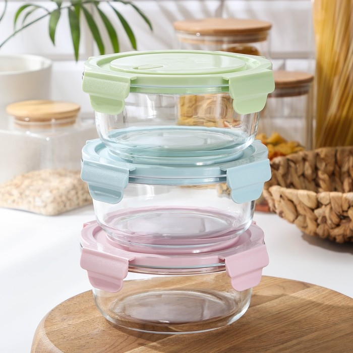 Набор контейнеров пищевых Доляна, 3 шт: 1 л, 18,5×12×7 см, прямоугольные, прозрачные, крышка зелёная
