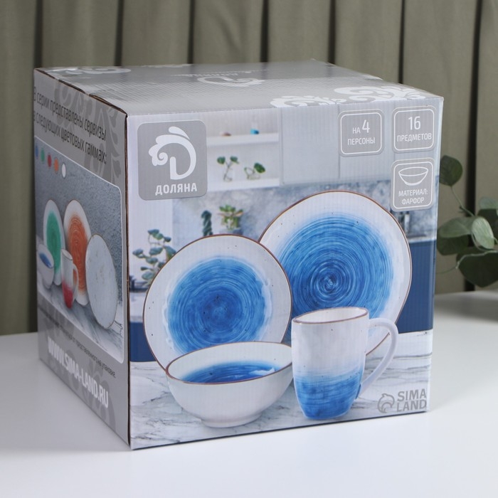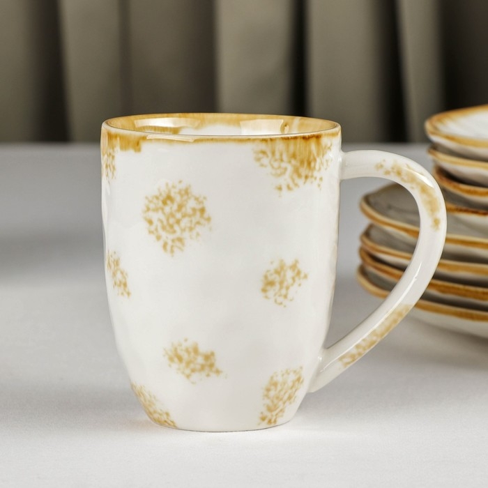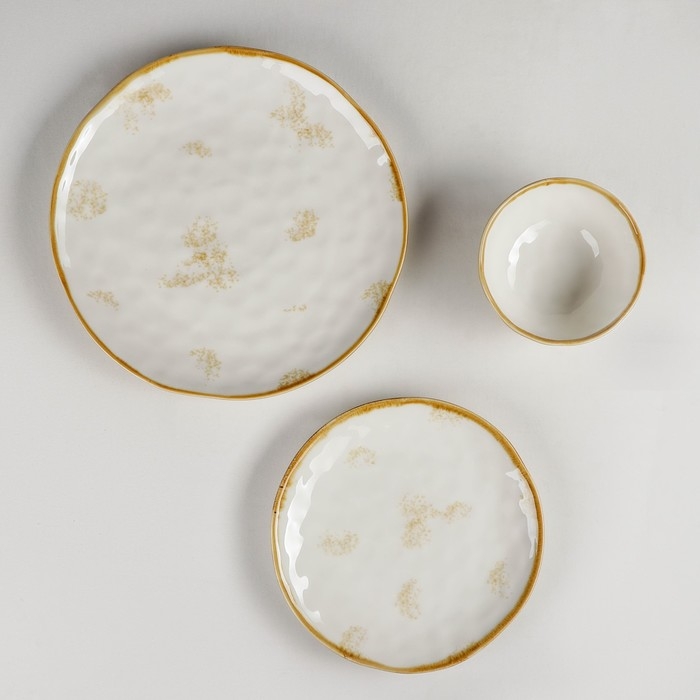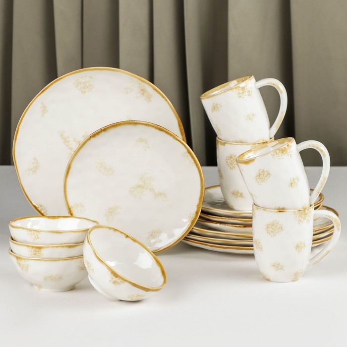 Набор фарфоровой посуды Доляна Organic Gold, 16 предметов: 4 тарелки d=20,5 см, 4 тарелки d=27,5 см, 4 миски d=12,5 см, 400 мл, 4 кружки 400 мл, цвет белый