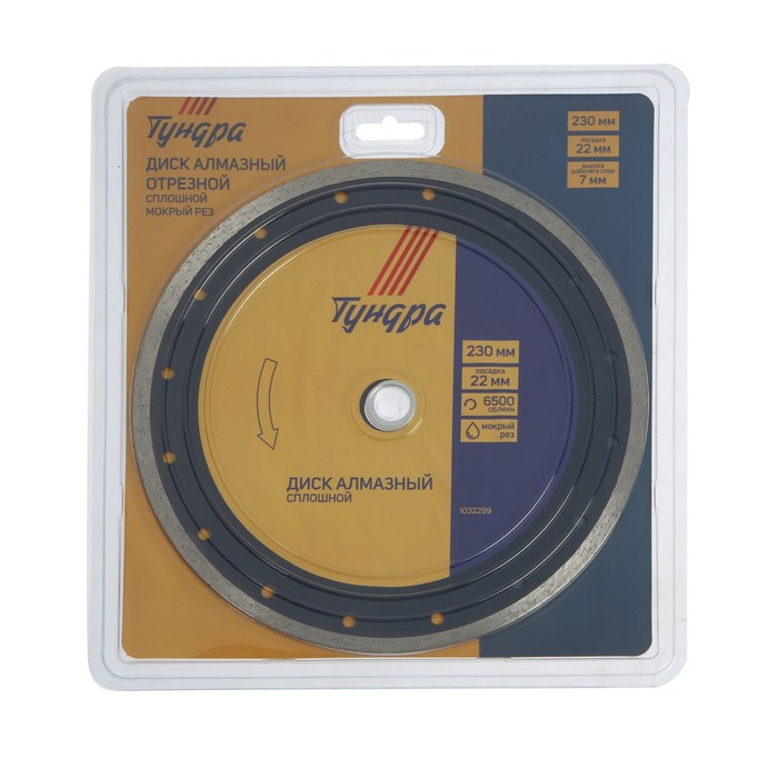 Диск алмазный отрезной ТУНДРА, сплошной, мокрый рез, 230 х 22 мм