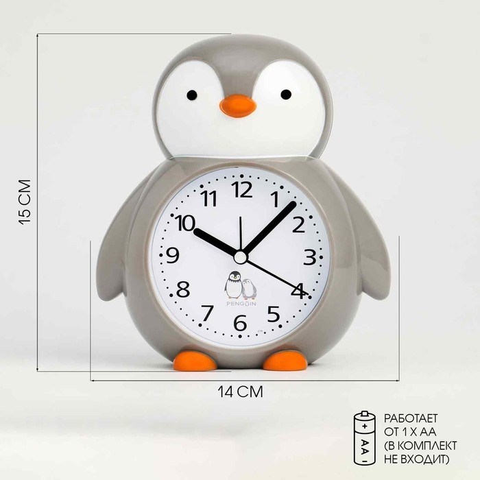 Будильник детский "Пингвин", дискретный ход, 15 х 14 х 5 см