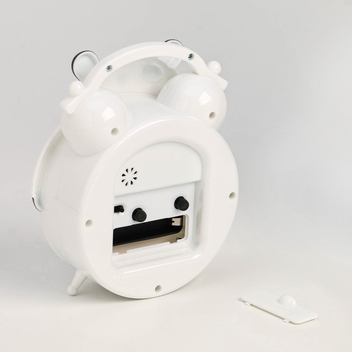 - Будильник оснащён кварцевым механизмом с дискретным ходом стрелок.