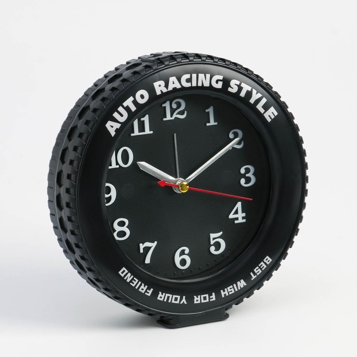 Часы - будильник настольные "Автогонки" детские, дискретный ход, d-10 см, 14 х 4 см, АА