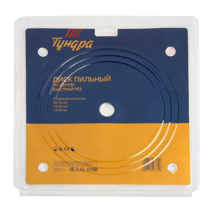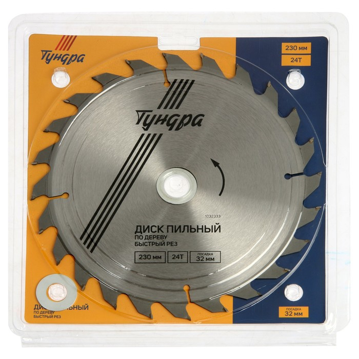 Диск пильный по дереву ТУНДРА, быстрый рез, 230 х 32 мм (кольца на 22,20,16), 24 зуба
