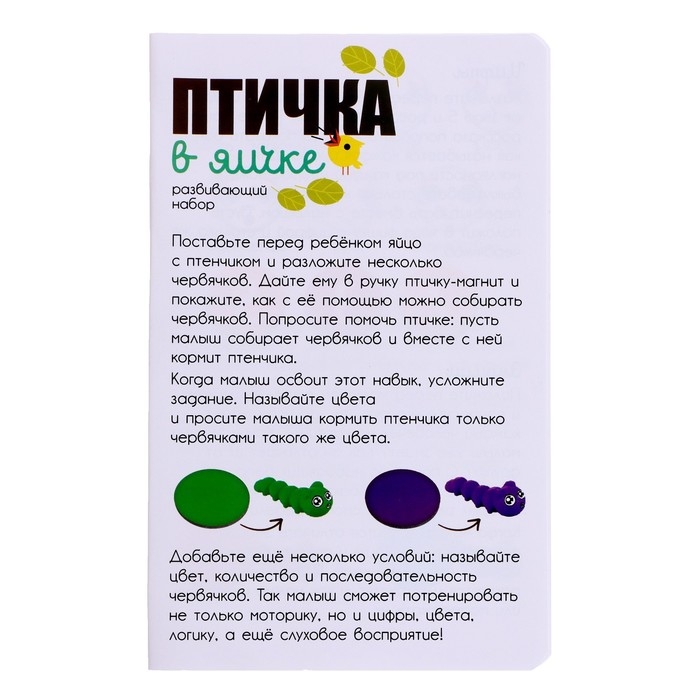 Установите яйцо с птенцом. Попросите кроху покормить птенца червячками с помощью мамы-птицы с магнитным клювиком.
