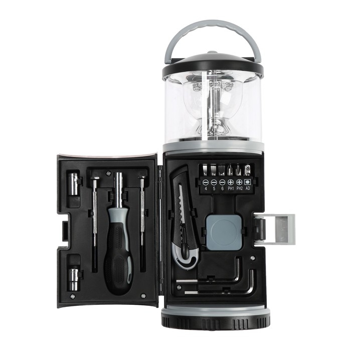 Набор инструментов ТУНДРА, подарочный пластиковый кейс "Фонарь", 15 предметов