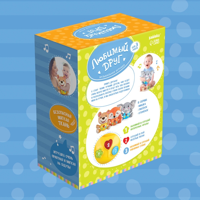 Музыкальная игрушка «Любимый друг. Слоник», песни, стихи, фразы