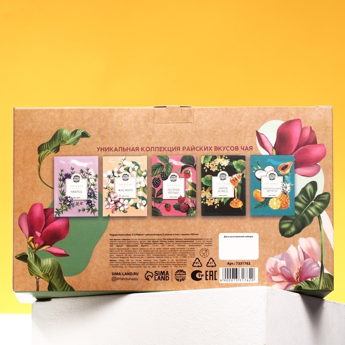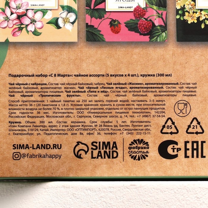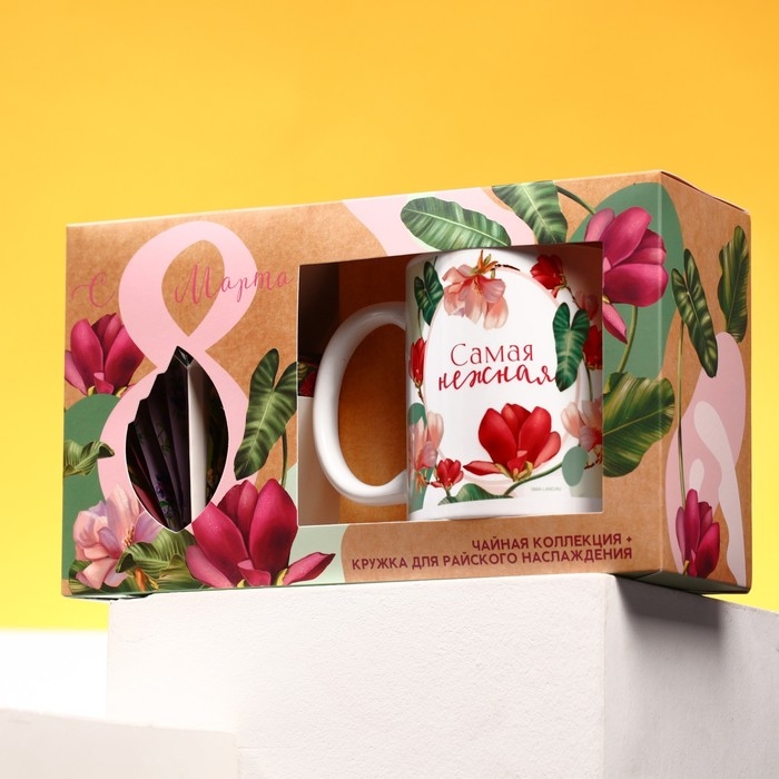 Подарочный набор «С 8 марта»: чайное ассорти (5 вкусов x 4 шт.), кружка 300 мл.
