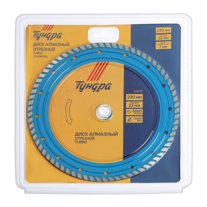 Диск алмазный отрезной ТУНДРА, TURBO, сухой рез, 230 х 22 мм
