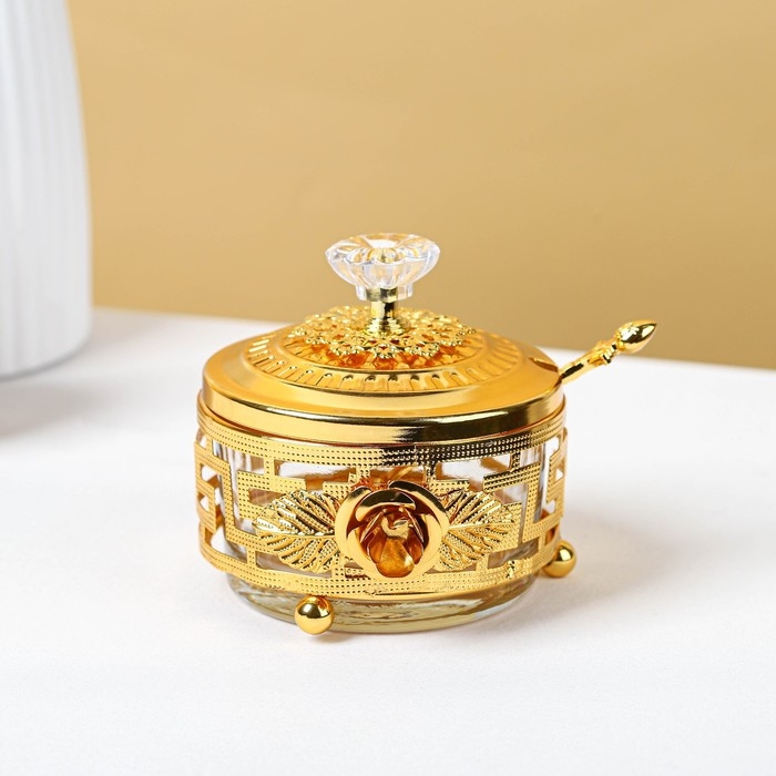 Сахарница «Роза» с ложкой, 200 мл, 9×10 см, цвет золотой