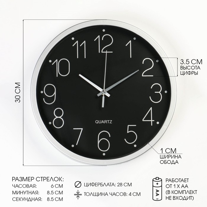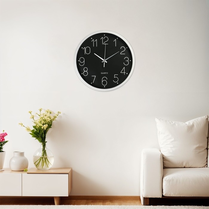 Часы настенные, серия: Классика, плавный ход, d-30.5 см, черные, цифры серебро