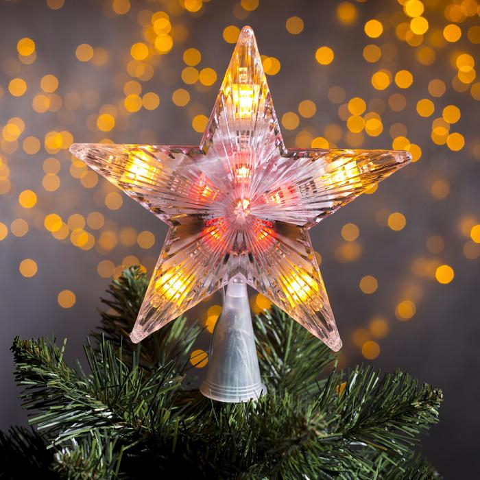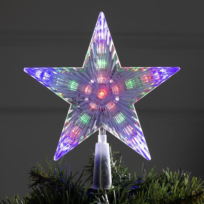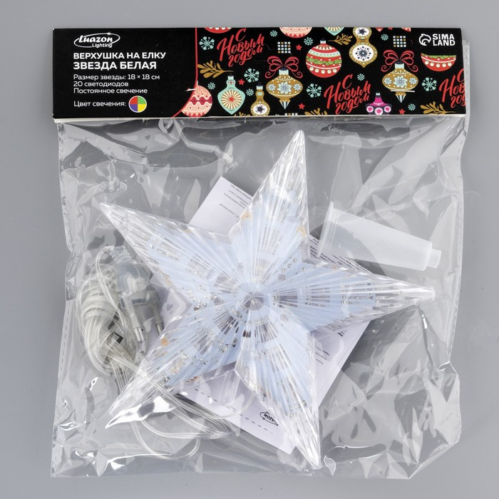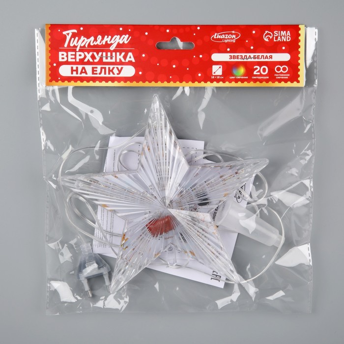 Светодиодная верхушка на ёлку «Звезда белая» 18 см, 20 LED, провод 2 метра, 220 В, свечение мульти