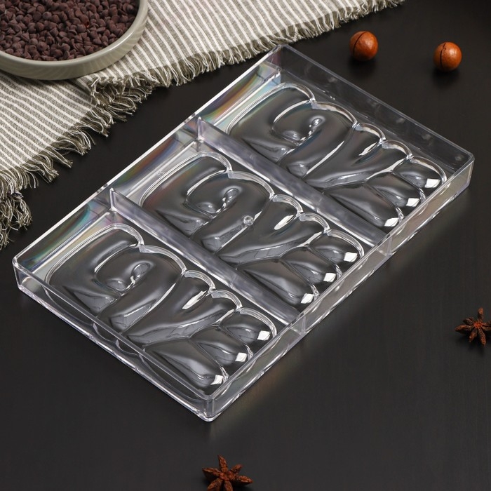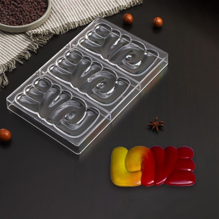 Форма для шоколада KONFINETTA LOVE, 27,5×17,5×2,5 см, 3 ячейки 7×7 см, цвет прозрачный