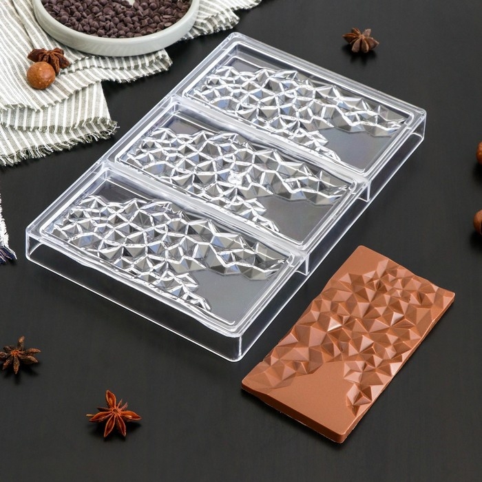 Форма для шоколада и конфет KONFINETTA «Иней», 3 ячейки, 27,5×17,5×2,5 см, ячейка 15,3×7,5×0,8 см