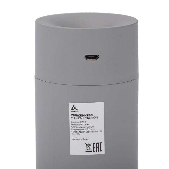 Увлажнитель воздуха Luazon HM-1, ультразвуковой, 180 мл, 1.8 Вт, портативный, серый