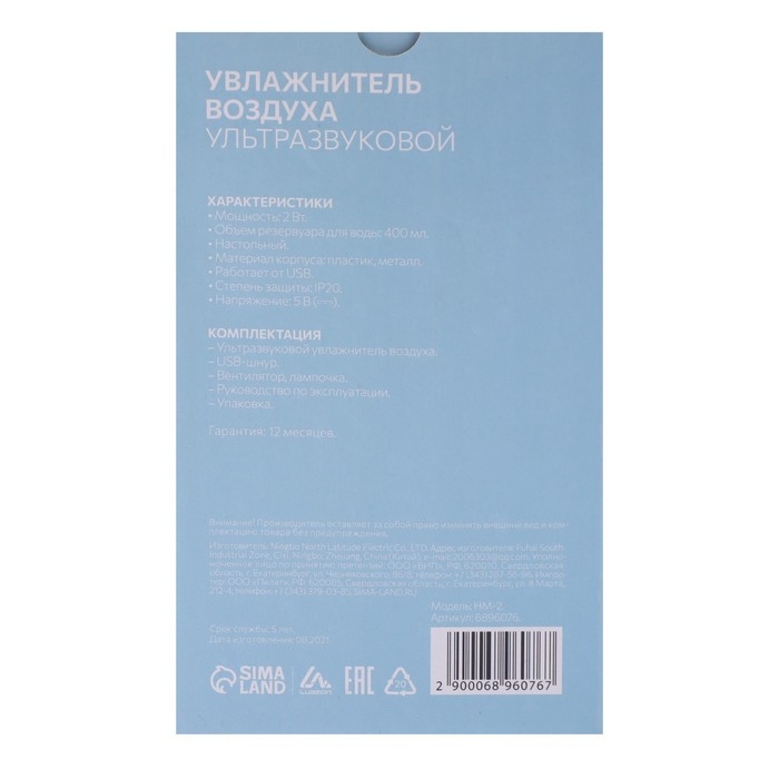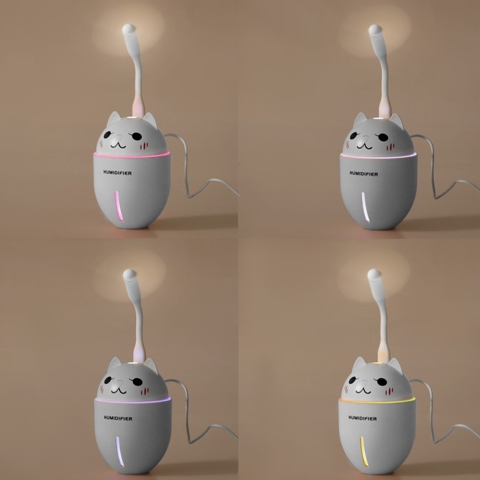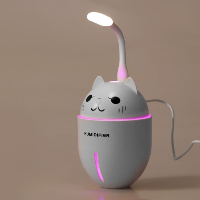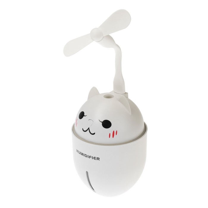 В комплекте с устройством находятся две насадки: вентилятор и светильник. Светодиодный светильник способен заменить ночник и наполнить пространство мягким белым светом. Вентилятор позволяет направить поток увлажнённого воздуха и ощутить прохладу даже в жаркое время года. Ёмкость устройства составляет 400 мл. Этого хватит на несколько часов бесперебойной работы без дополнительного пополнения воды.