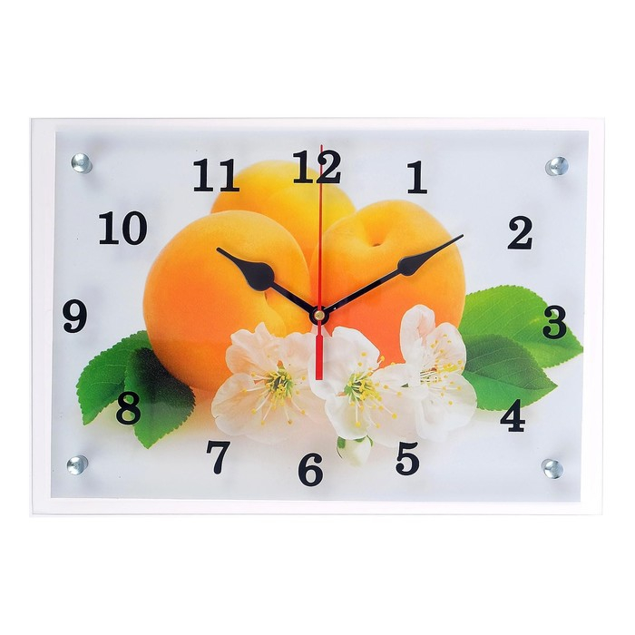 Часы-картина настенные, интерьерные "Абрикосы с цветами", бесшумные, 25 х 35 см